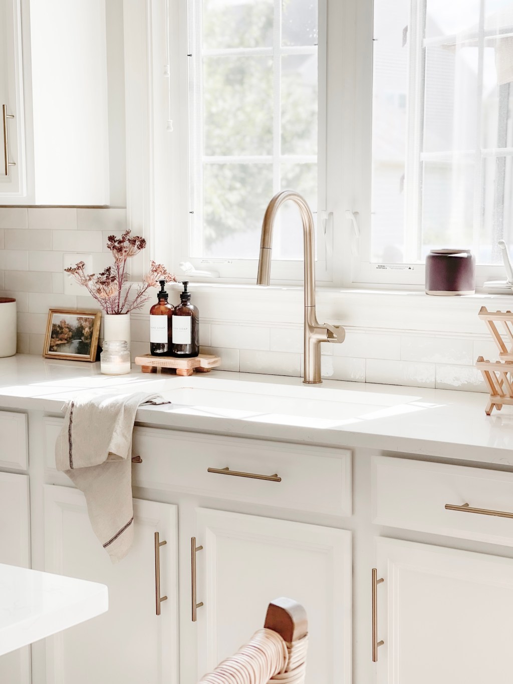 We have been in our house for a few years and while the kitchen wasn’t horrible, it definitely wasn’t as bright as I wanted. We’ve been trying to decide whether we do a small update (basically all the things you did to yours) or a bigger project and replace cabinets, change walls, etc. Seeing how gorgeous your kitchen looks with the changes I was planning to make to mine (I even had the same tile backsplash picked out!) I think we’ll go for the mini update. The transformation looks so good!! Do you mind sharing what quartz countertops you went with?
